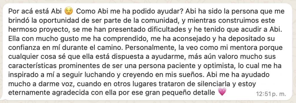 Solo trabajo con un número reducido de mujeres al mes para asegurar un acompañamiento profundo.